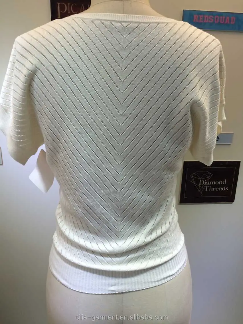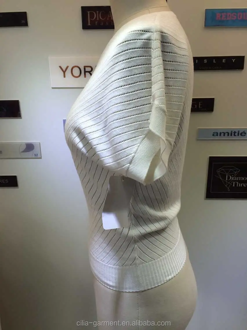 LADY SWEATER,SHORT SLEEVE,ROUND NECK LONG PULLOVER,WITH FASHION STITCH.THREE COLOR STRIPE