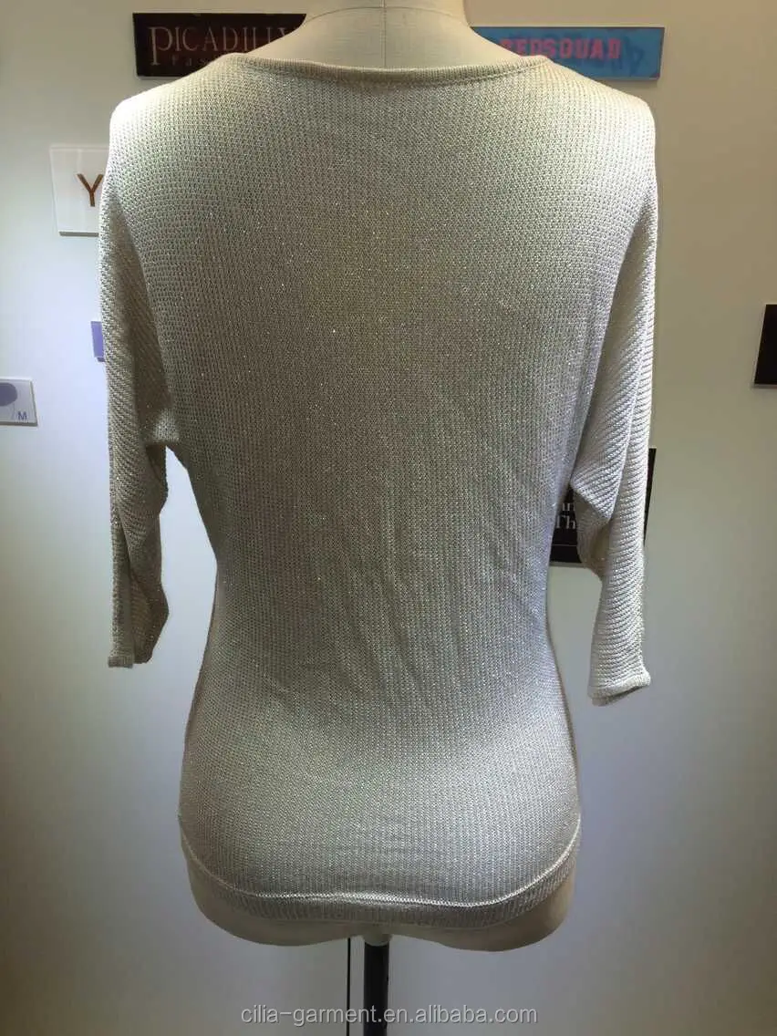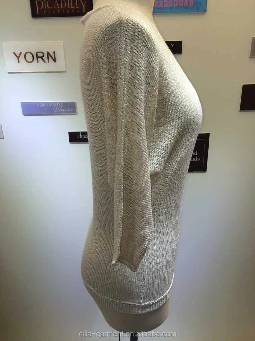 LADY SWEATER,SHORT SLEEVE,ROUND NECK LONG PULLOVER,WITH FASHION STITCH.THREE COLOR STRIPE