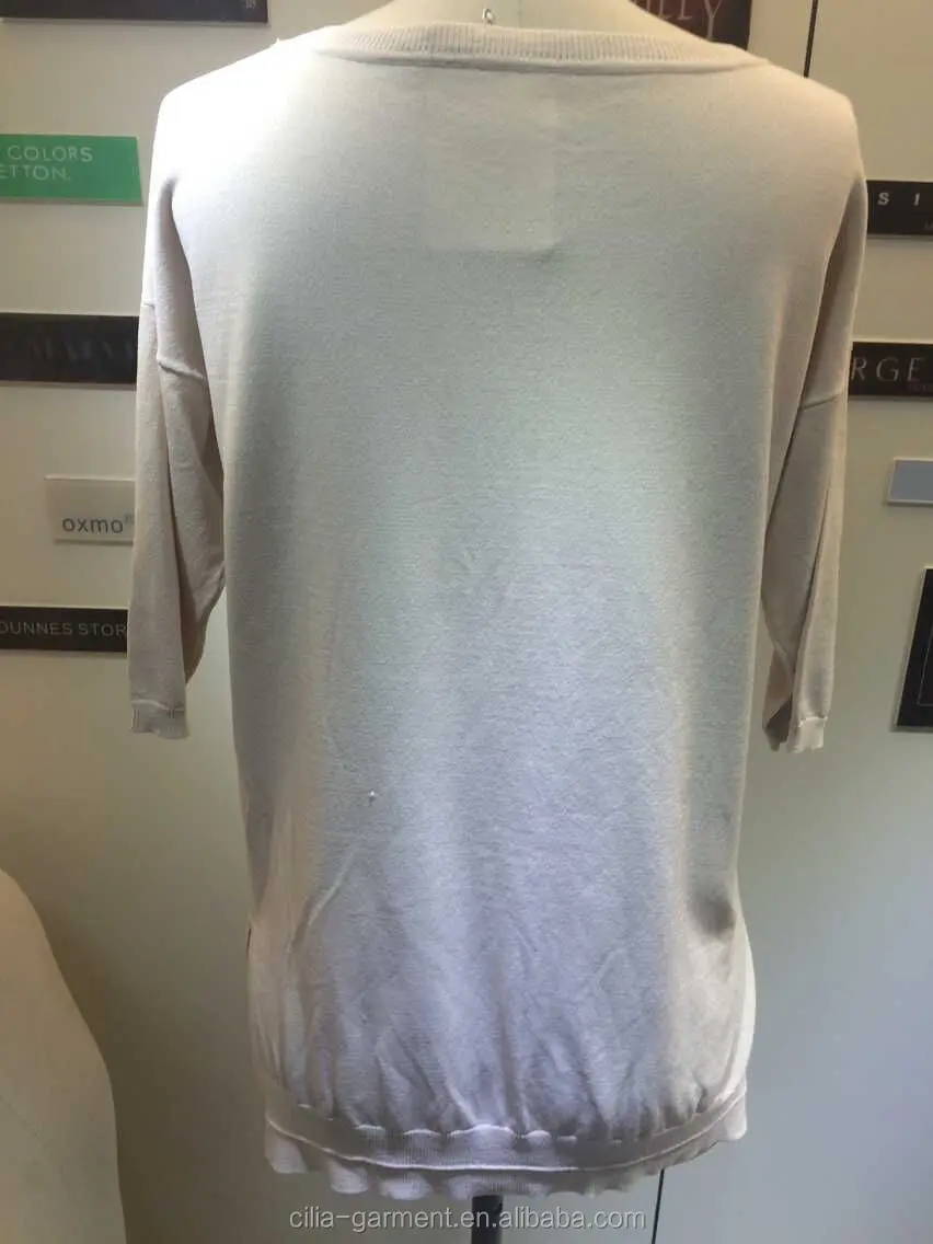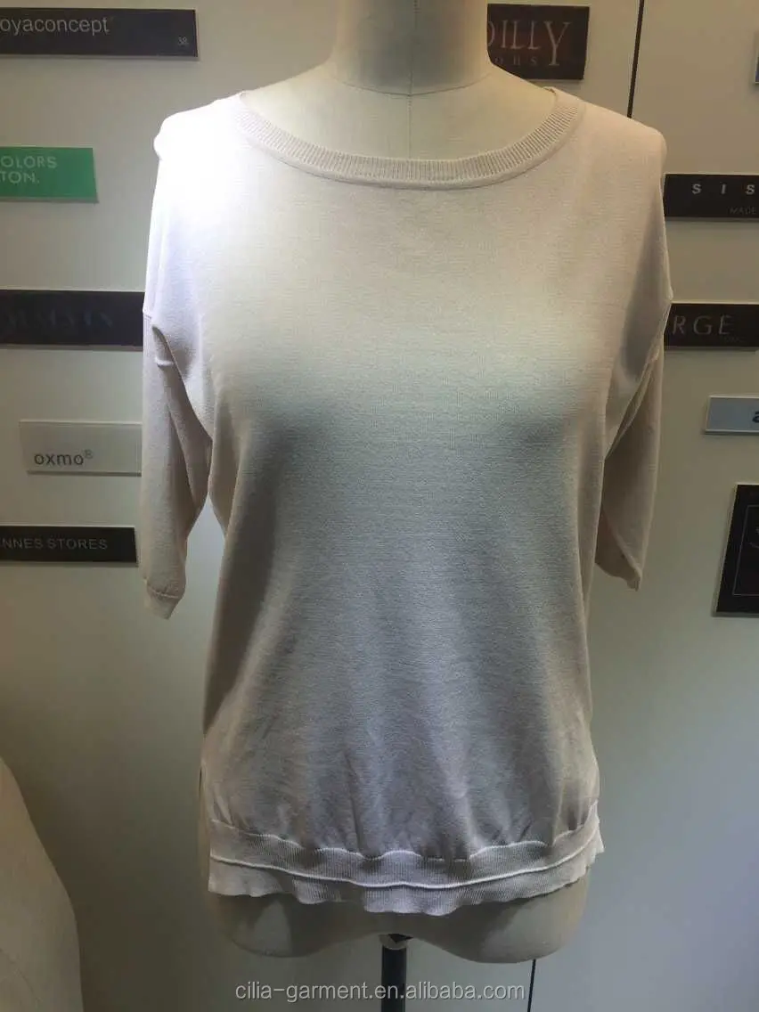 LADY SWEATER,SHORT SLEEVE,ROUND NECK LONG PULLOVER,WITH FASHION STITCH.THREE COLOR STRIPE.