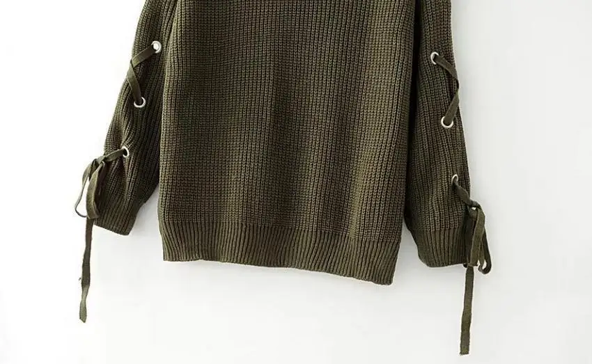| Name | Best selling women ladies' oversized round neck knitted lace up pullover sweater |