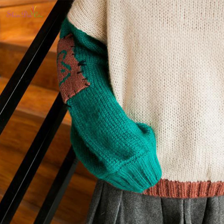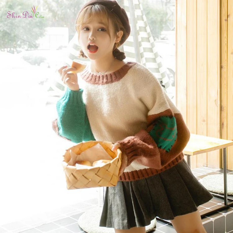 Custom Long Lantern Sleeve O-Neck Knitted Pullover Lovely Girl Sweater