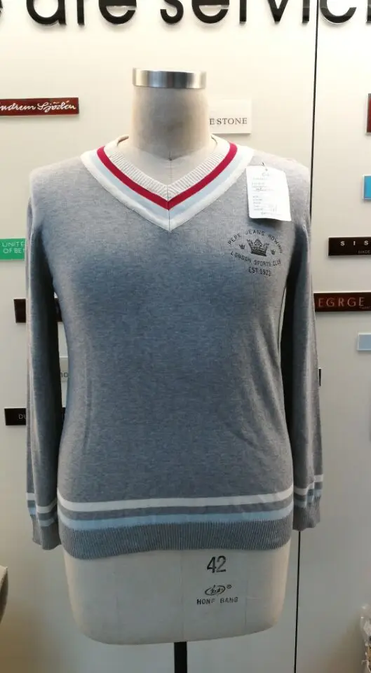 | Name | Hots fashion grey varsity v-neck long sleeve knitted top pollover sweater |