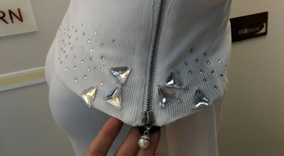 | Name | Mature lady womens off shoulder tight pullover sweater with rhinestones and zipper |