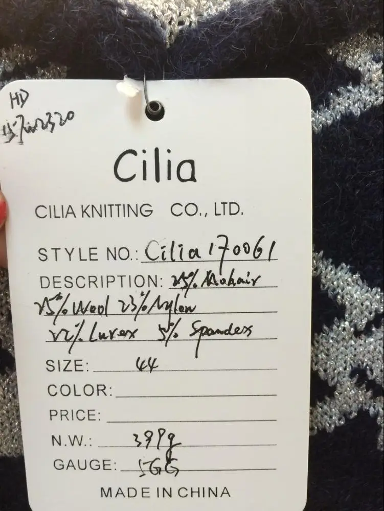 | Material | 25%Mohair 25%Wool 23%Nylon 22%Lurex 5%Spandex |
