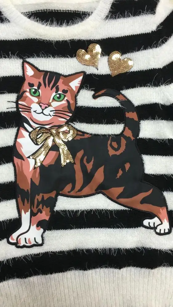 | Name | Wholesales new design girls stylish knitted pullover sweater with cat embroider |
