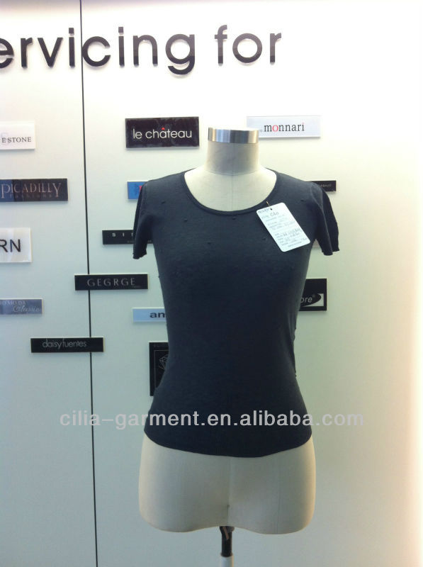 lady sweater,short sleeve pullover with dots allover,knitwear